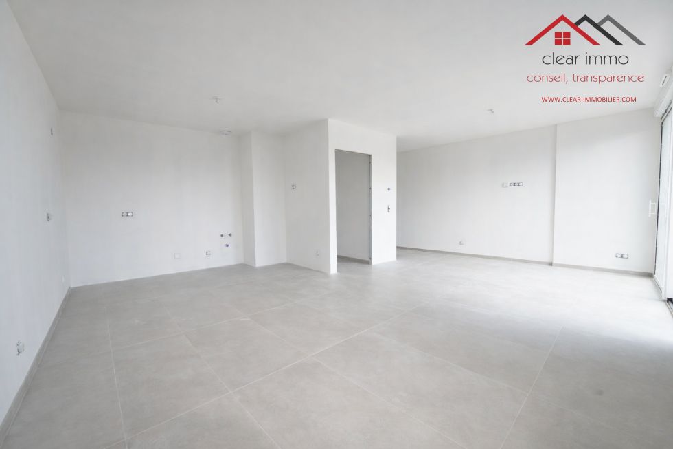 Spacieuse pièce de vie de 35 m², lumineuse et facilement aménageable, ouvrant sur un grand balcon de 14 m² exposé plein sud