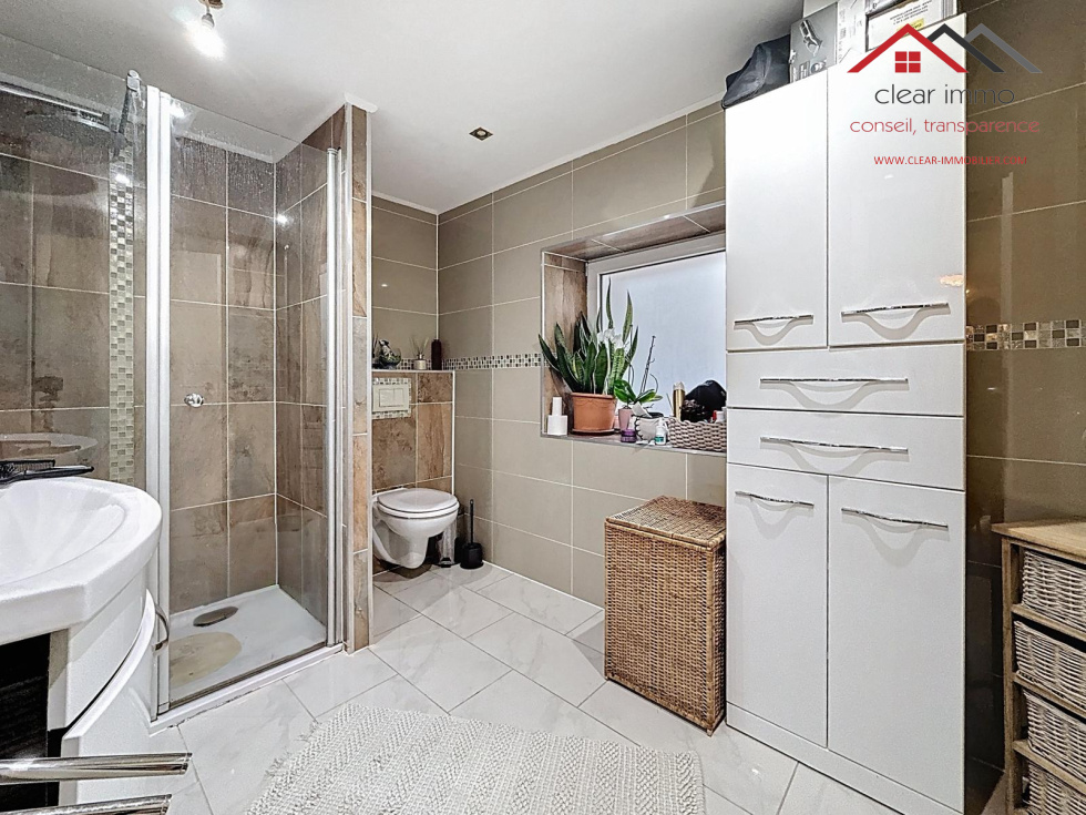 3 chambres spacieuses (22 m², 16 m² et 13 m²), Salle de bain avec douche, meuble vasque et WC suspendu